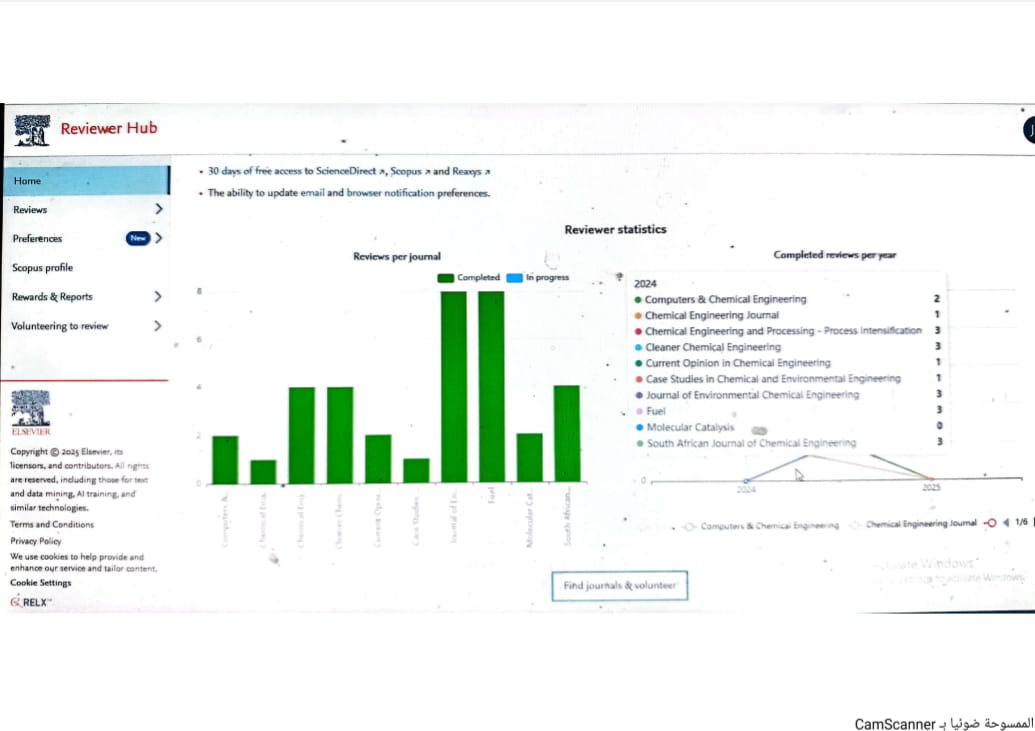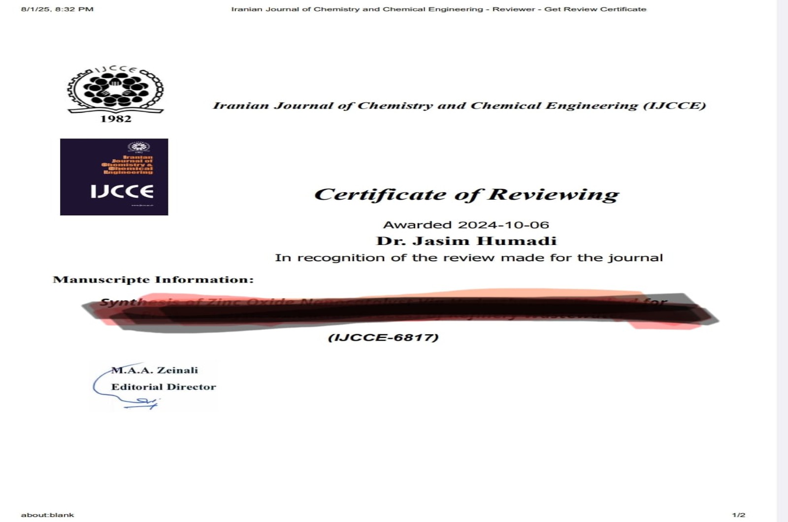 The researcher and faculty member at the College of Petroleum Process Engineering, University of Tikrit, Lecturer Jasim Ibrahim Hammadi, has been selected as a scientific reviewer for more than forty research papers published in high-impact international journals during the academic year 2024–2025. Renowned global publishing houses such as Elsevier and Springer Nature have chosen him to review several research papers. It is noteworthy that these journals are indexed in prestigious databases, including Scopus, Web of Science, and Clarivate Analytics.