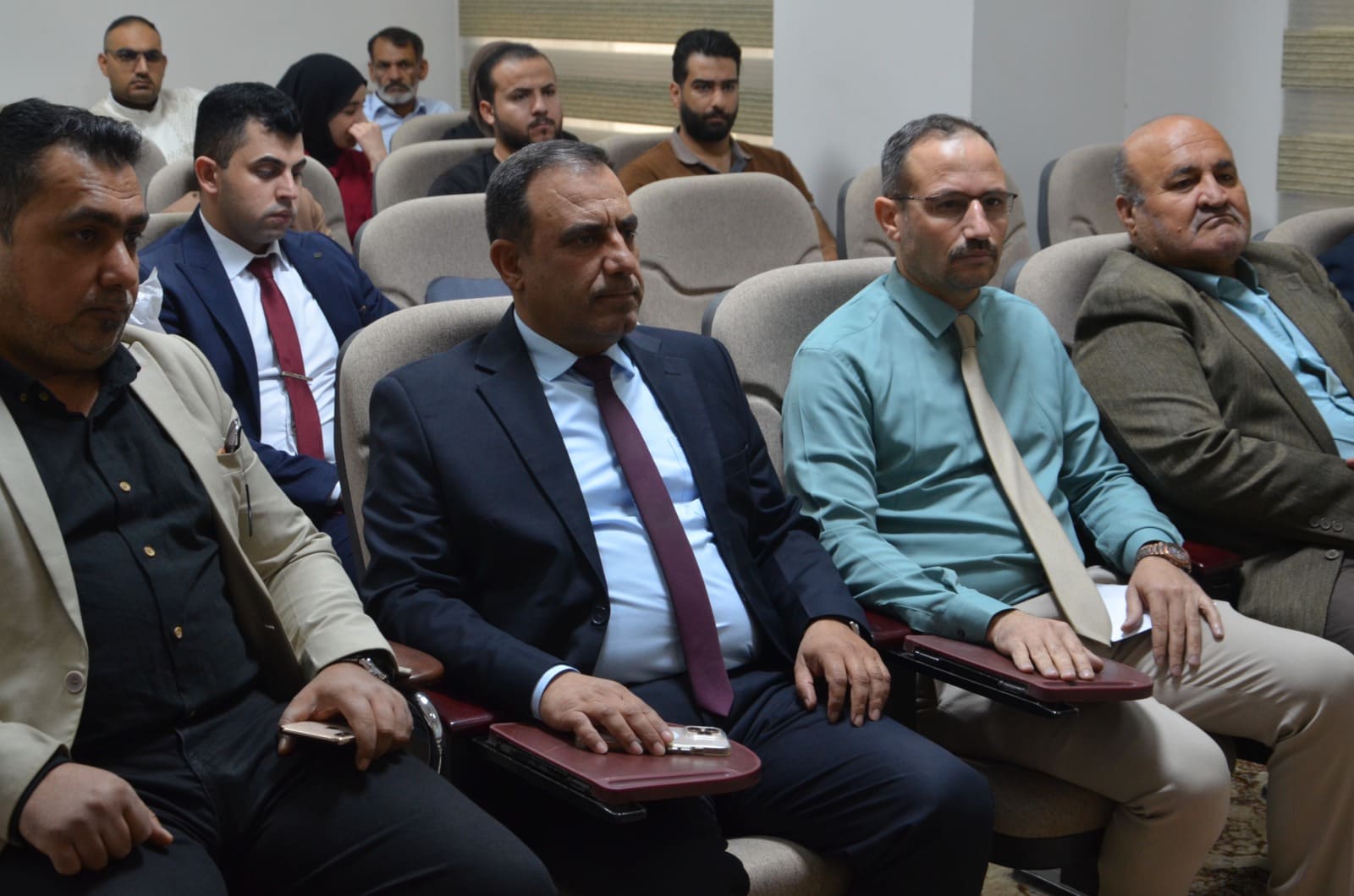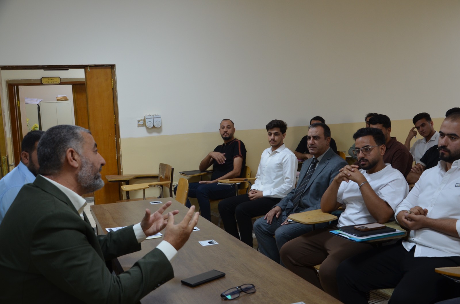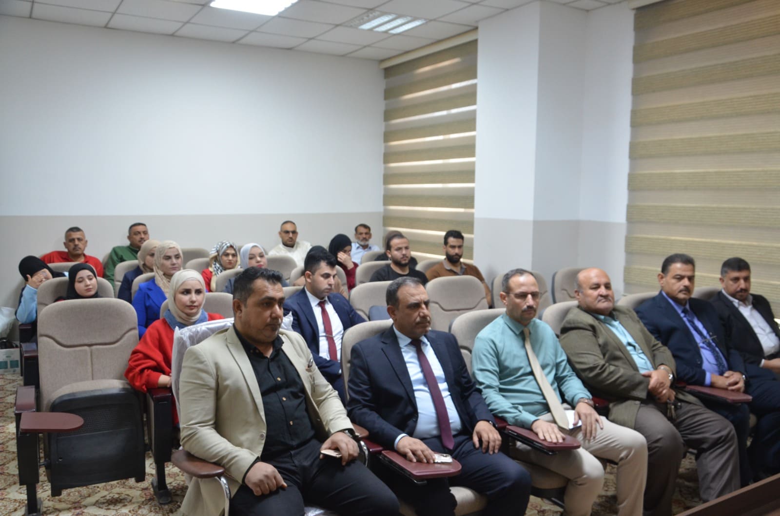 The seminar presentations were delivered by: Lt. Col. Dr. Baha’a A’ed Abdulla Captain Dahham Mohy Al-Din (Community Police Department – Salah al-Din Prof. Dr. Khalid Ali Saleh (College of Arts – Tikrit University) The seminar included discussions with attendees on the most common rumors circulating within society and ways to confront them, as well as providing awareness guidelines to students and university staff regarding the proper use of social media.