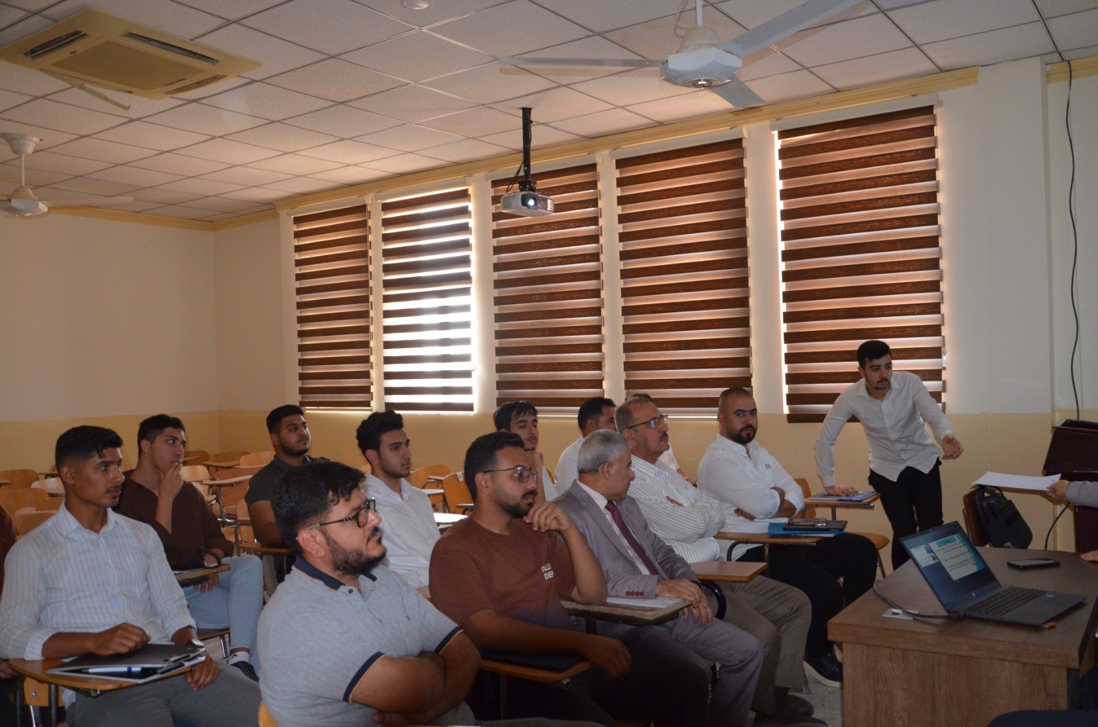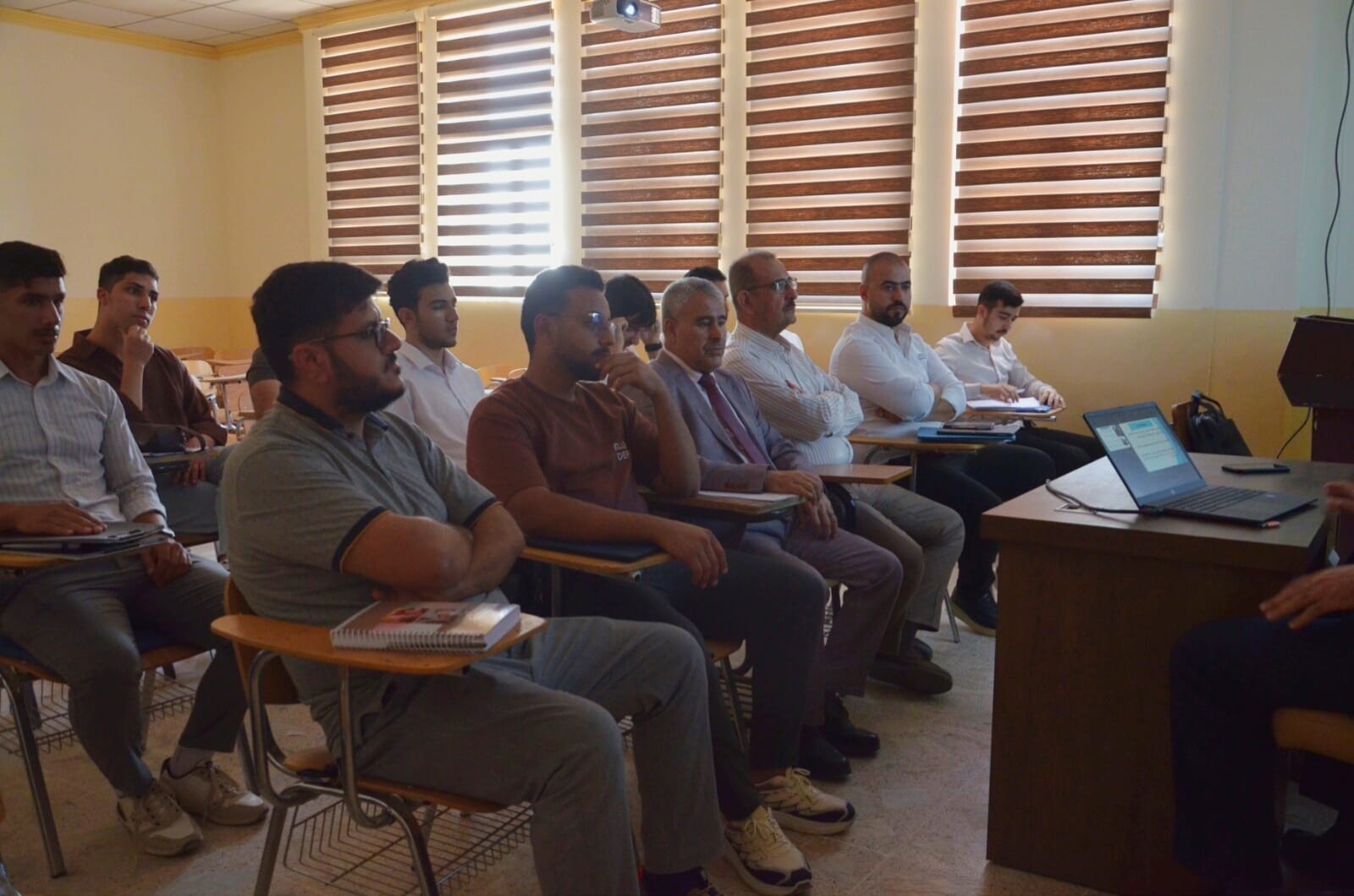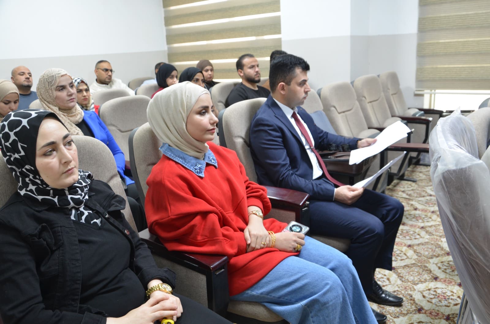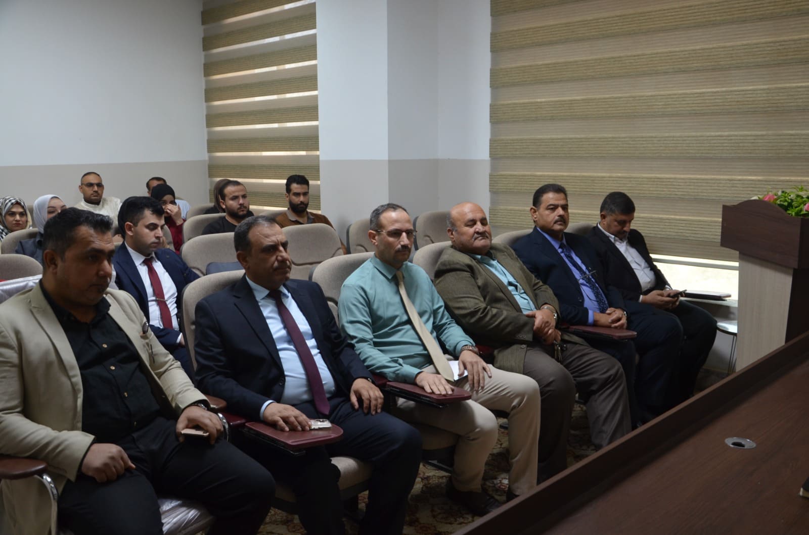 The seminar presentations were delivered by: Lt. Col. Dr. Baha’a A’ed Abdulla Captain Dahham Mohy Al-Din (Community Police Department – Salah al-Din Prof. Dr. Khalid Ali Saleh (College of Arts – Tikrit University) The seminar included discussions with attendees on the most common rumors circulating within society and ways to confront them, as well as providing awareness guidelines to students and university staff regarding the proper use of social media.